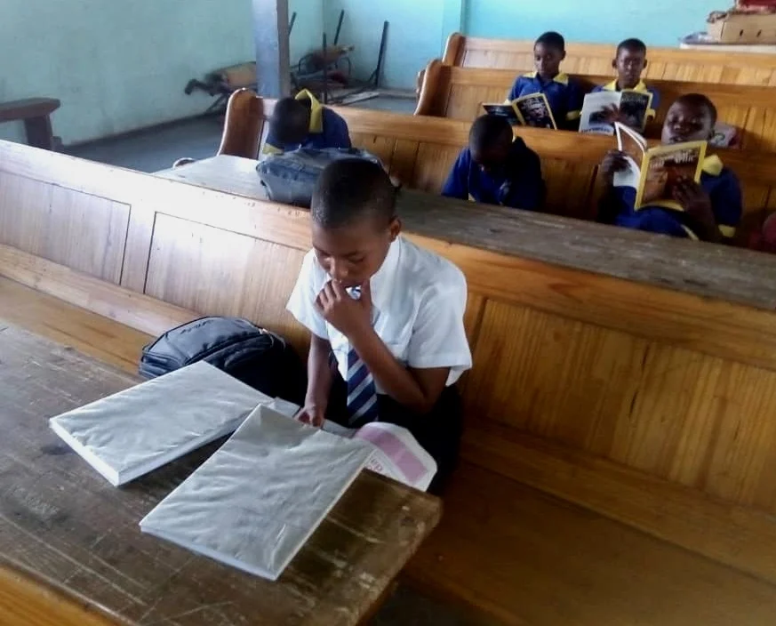 Although the children don’t have access to an enormous library, they chose from books, magazines and newspapers they have available. Instead of doing their homework on this day, they read for a whole hour and absolutely loved it.